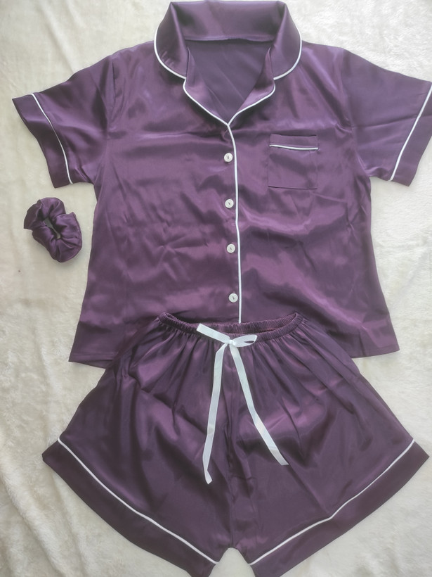 بلوز و شلوارک ساتن همراه اسکرانچی